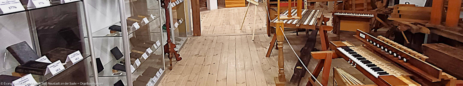 Das Orgelbaumuseum in Ostheim vor der Rhön würdigt dieses Jahr das Jubiläum „500 Jahre Evangelisches Kirchengesangbuch“ mit einer Ausstellung von evangelischen Gesangbüchern aus drei Jahrhunderten - siehe die Fotos. Es kann zum Gruppenpreis eine Sonderführung gebucht werden, die in Zusammenwirken der Mitarbeiterinnen des Museums mit der Evangelischen Erwachsenenbildung, Stefan Wurth, stattfindet: Nach einer verkürzten Museumsführung (durch eine Mitarbeiterin des Museums) landet man im obersten Stockwerk bei den Vitrinen mit fast 50 Gesangbüchern und erfährt einiges über die Bedeutung des Gesangbuches durch die Jahrhunderte. Zwischendurch werden zwei oder drei bekannte Lieder aus dem aktuellen Evangelischen Gesangbuch gesungen. Falls gewünscht könnte dabei die/der „eigene“ Organist/in der Besuchergruppe die Orgel schlagen. Evtl. ist auch ein Kaffeetrinken im Museum möglich, so dass der kleine Gemeindeausflug schon fast perfekt wäre... (Hinweis: Leider ist der Museumsbereich im obersten Stockwerk nicht barrierefrei zu erreichen.)