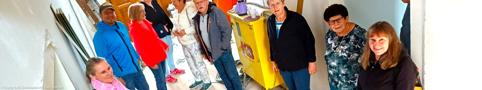 Und genau das soll nun mit dem Pfarrhaus in Sondheim geschehen. 500.000 Euro aus dem Fonds und weitere Fördergelder (u.a. vom Amt für ländliche Entwicklung, vom Amt für Denkmalpflege und vom Landkreis Rhön-Grabfeld) machen es möglich, dass die Kirchengemeinde bei Gesamtkosten von 1,6 Mio. Euro „nur“ 289.000 Euro selbst finanzieren muss. Dafür sollen die Mieteinnahmen dienen, die 10 Jahre lang durch die Vermietung an geflüchtete Menschen und danach aus dem freien Wohnungsmarkt erwirtschaftet werden. Unterstützt vom damaligen Dekan Matthias Büttner fasste der Kirchenvorstand also den mutigen Beschluss, durch den seit dem Baubeginn Anfang 2023 endlich der weitere Verfall des Gebäudes beendet werden konnte. Und „auch wenn die Baukosten zwischendurch stark in die Höhe gingen, ist inzwischen die Aussicht gut, dass der geplante Kostenrahmen eingehalten wird“, freut sich Stefanie Scherf, Vertrauensfrau des Kirchenvorstandes. Sie hat zusammen mit Carolin Menz die Projektverantwortung vor Ort in den Händen, im Auftrag des gesamten Kirchenvorstandes.